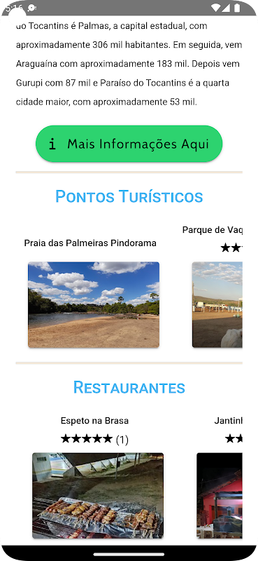 O uso da App adalah mudah. Just escolher uma cidade and fazer clique sobre ela for ver toda a informação. Incluindo um pequeno resumo e uma lista de Pontos Turísticos com fotos, número de resenhas and a média das avaliações do local dadas pelos usuários.
