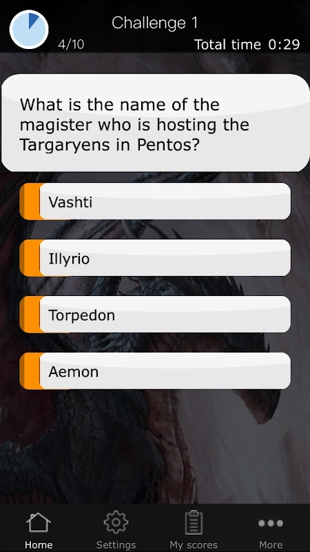 You are a fan of the legendary Game of Thrones series? You know all the houses, all the actors and all the story twists? You know Westeros better than your own home? Great! This quiz features hundreds of questions across all the seasons 1 to 5. Here are some examples: