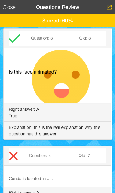 Quizionic allows you to create Quiz or Question Exam Simulator Apps in Ionic FrameWork with Cordova and SQLite. Quizionic illustrates the use of following capabilities/libraries for a iOS/Android generated App: