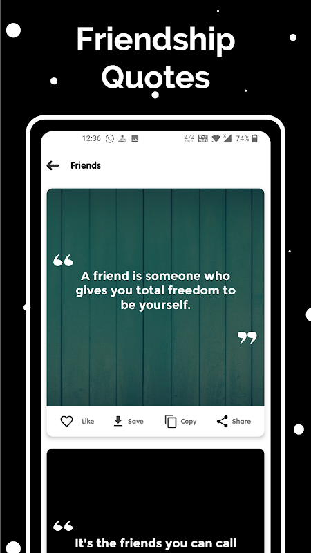 Petikan dan Status Terbaik adalah aplikasi yang menyediakan koleksi sebut harga yang besar untuk kategori yang berlainan. Terdapat lebih daripada 85,000 petikan dan lebih daripada 100 kategori.