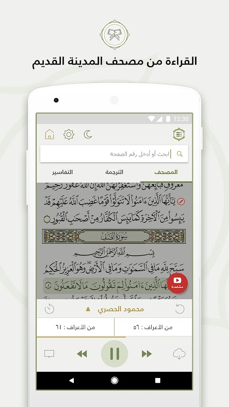 * Bacalah Al-Qur'an dalam riwayat Hafs, dalam antara muka mudah dengan reka bentuk yang menarik.