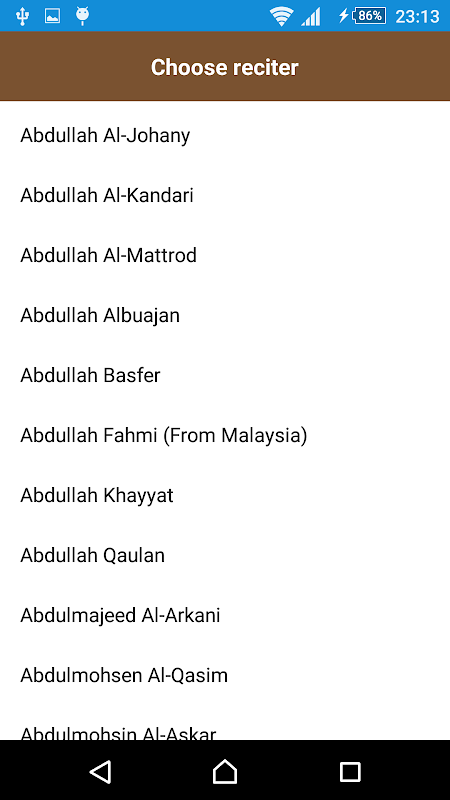Quran Recitation allows us to listen the surahs, download which one you want. The downloaded surah can be listened without accessing the internet. In the same time you can delete any downloaded surah to free the space.It contains around 50 reciters.