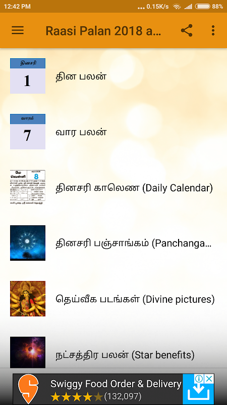 Daily Raasi Palan gives you various astrology updates for all the twelve raasi's and with below features in Tamil with mantras/slogams and many more.