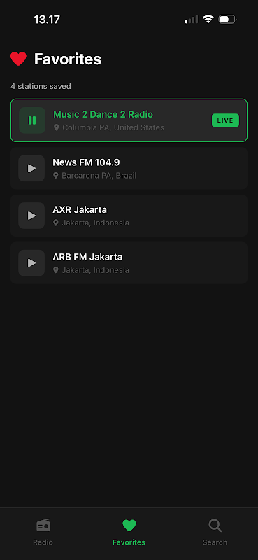 3. Gunakan tab Carian untuk menemui lebih banyak stesen di seluruh dunia