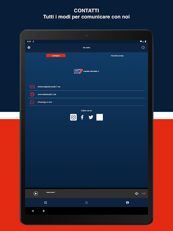 Muat turun aplikasi percuma Radio Studio 7 Web - Radio - TV di telefon pintar anda - Radio - Televisyen - Animasi - Siaran Langsung. Radio Studio 7, berkomunikasi dalam 360 ∞!