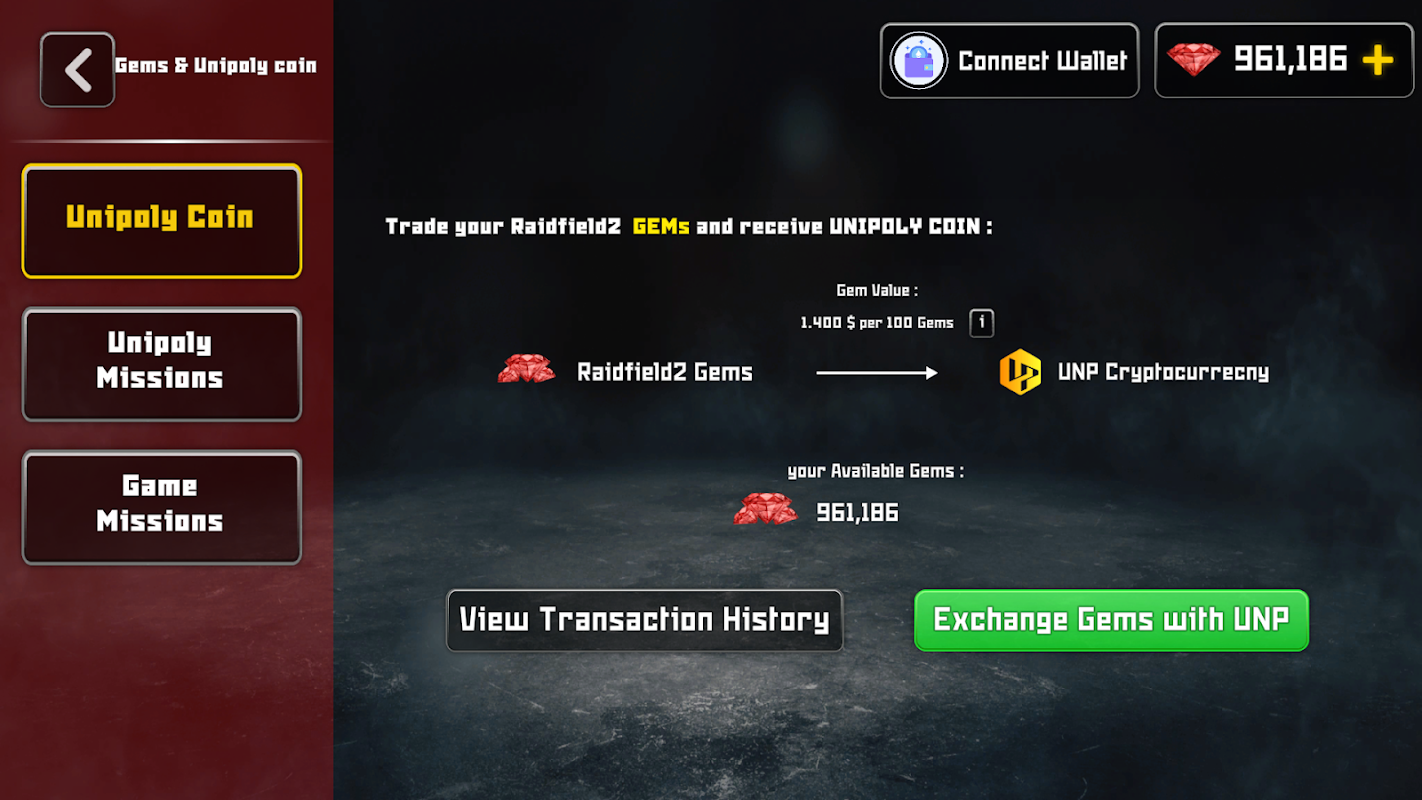 Dalam Raidfield 2, kehebatan medan perang anda bukan hanya untuk kemuliaan tetapi juga untuk keuntungan. Dapatkan mata wang dalam permainan kami, Permata, melalui pencapaian dan permainan strategik anda. Tukarkan Permata ini dengan Unipoly Coin, mata wang kripto eksklusif kami, untuk menikmati ganjaran dunia sebenar. Kemahiran anda di medan perang diterjemahkan kepada aset digital yang berharga, menjadikan setiap kemenangan lebih bermanfaat.