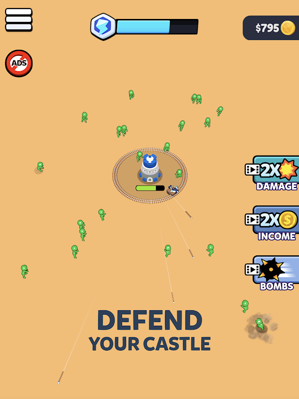 Protect your castle from enemy attacks. Add various wagons to defence your base!