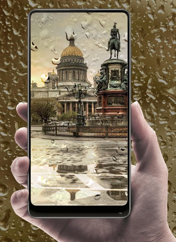 Dengan menggabungkan dan mencampurkan imej latar belakang, cawangan latar depan, titisan hujan pada kaca dan pancuran mandian hujan anda boleh menjadikan peranti anda benar-benar unik.