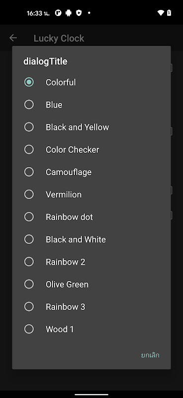 Terdapat banyak jenis jam yang boleh dipilih: pelangi, biru, hitam dan