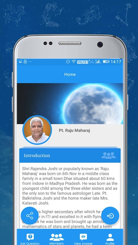This Astrology app is designed with a sole intention to reach out to as many people as possible and provide them solutions for their problems through astrological guidance. After almost 20 years of service to people, Pt. Raju Ji Maharaj wishes to go beyond geographical boundaries to help people through social media. He has his own unique way of predicting a person's future by analyzing his/her computerized horoscope. He has not learnt astrology from anyone. It is purely a God's gift to him. The app provides