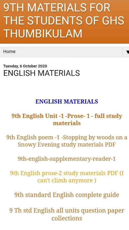 An application containing study materials for the 9th students of GHST.