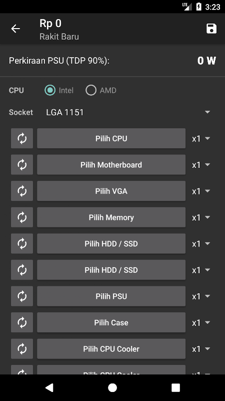 Dengan aplikasi ini kamu bisa merakit komputermu sendiri dengan memilih berbagai komponen mulai dari CPU, Motherboard, Memory, VGA, HDD / SSD, PSU, Case, hingga HSF Cooler. Semua komponen disertai dengan harganya masing-masing.