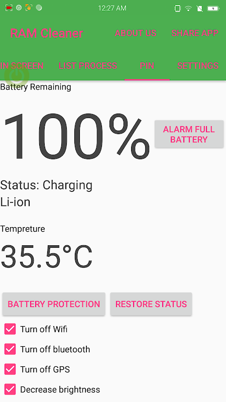 -Tambahkan ciri penggera peranti apabila baterai penuh.