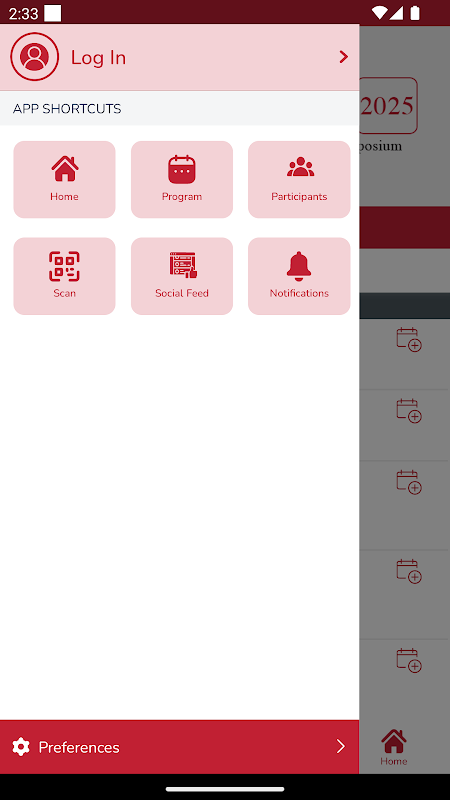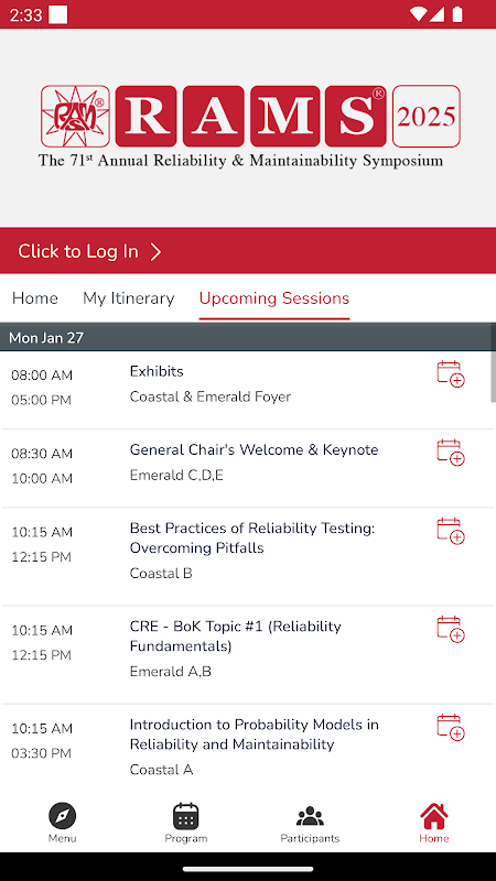 Apl ini akan membolehkan anda log masuk dan sesi atau pembentangan kegemaran yang membolehkan anda membuat jadual perjalanan tersuai anda sendiri.