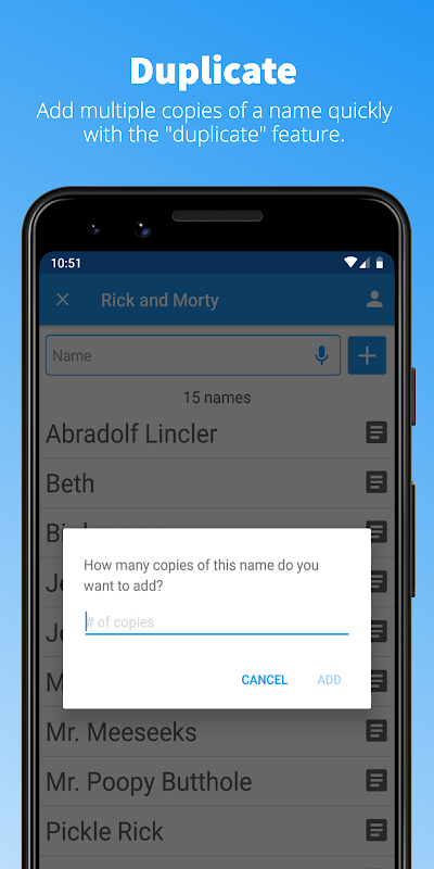 Aplikasi ini adalah sumber terbuka! Bantu saya menjadikannya lebih baik di: https://github.com/Gear61/Random-Name-Picker