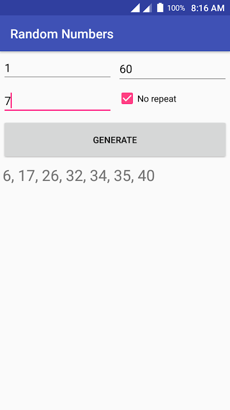 Anda boleh memilih daripada nombor untuk bermula dan berakhir dengan dan berapa banyak nombor untuk menjana.