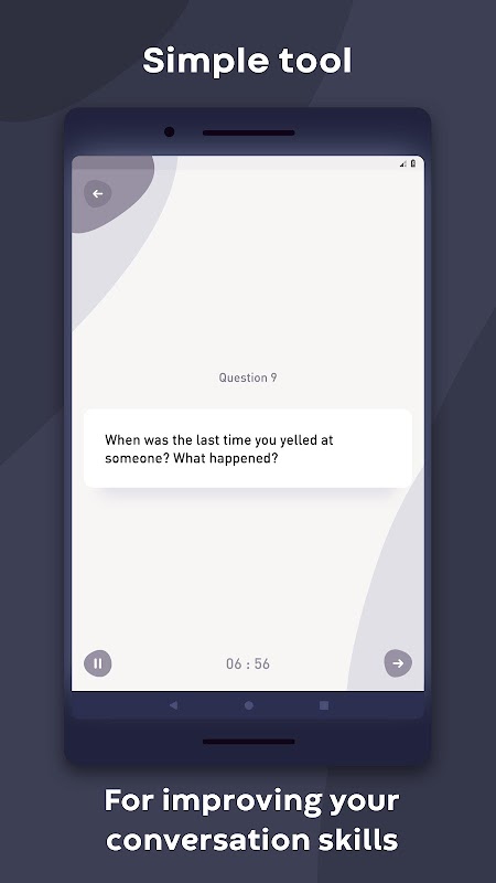 Tujuan utama aplikasinya adalah untuk memberi anda topik rawak untuk perbualan setiap kali anda mahu mengamalkan.