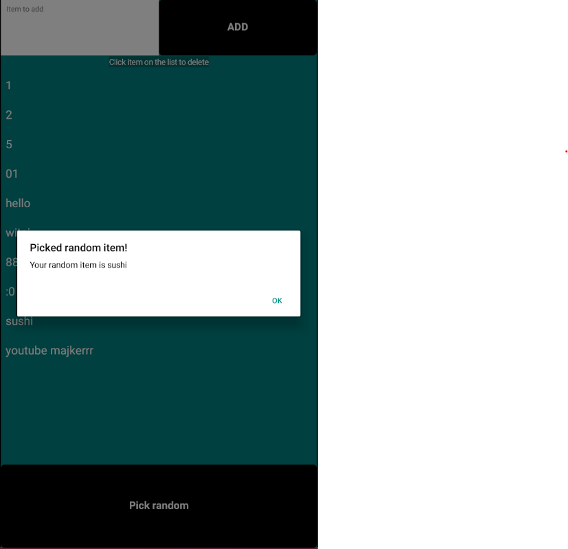 Apl di mana anda boleh menambah item pada senarai dan kemudian memilih item rawak.