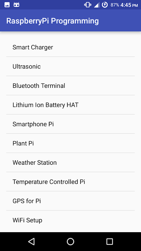 Permohonan ini mengandungi semua projek yang dibuat pada Raspberry Pi. Kini anda boleh menghantar kod sumber untuk diri anda dalam hanya cara yang mudah dengan menyalin kod dan menampal dalam seksyen e-mel. Tambahkan id mel anda dan menghantar. Jangan bimbang jika anda tidak mempunyai internet anda boleh menyimpannya pada telefon anda dan kemudian mel sendiri. soalan yang paling ditanya ditambah dalam permohonan itu dengan butir-butir Raspberry Pi.