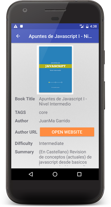 Permohonan ini akan memuatkan koleksi percuma buku Javascript untuk anda. Himpunan percuma buku Javascript untuk belajar untuk membangunkan dalam javascript. Ketik pada mana-mana nama buku dan butir-butir buku dengan nama pengarang, tag, Ringkasan dan butang untuk membawa anda ke laman web penulis lain-lain akan dipaparkan kepada anda. Pilih pilihan New muat turun daripada menu pada skrin utama untuk mendapatkan senarai terkini buku.