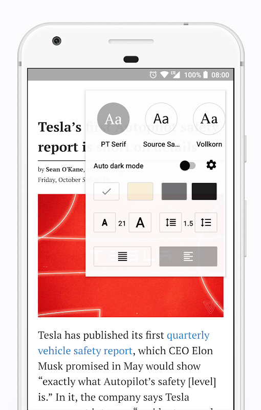 🌟 Readability view lets you read full articles for partial RSS content while providing consistent reading experience, activate it by double tapping (Provided by Mercury Parser)