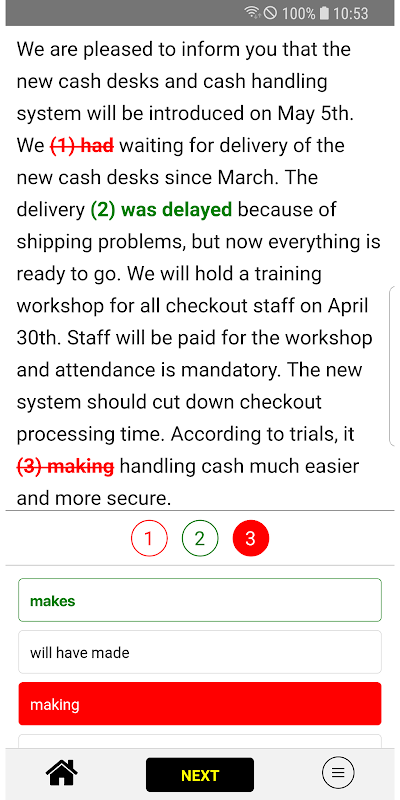 Di sini kami menyediakan alat dan bahan yang hebat yang boleh anda gunakan untuk mengamalkan kemahiran membaca TOEIC anda pada bila-bila masa, di mana sahaja di telefon bimbit anda.