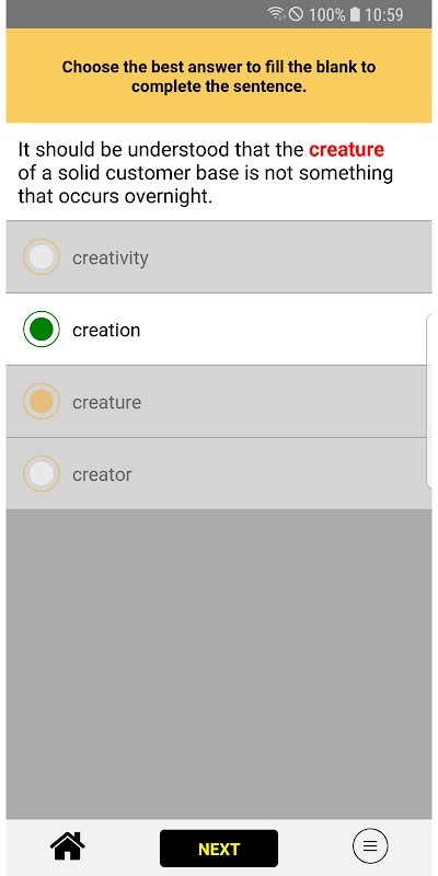 Aplikasi ini adalah untuk memberi anda sejumlah besar amalan yang dipercayai yang anda hanya boleh berlatih dan mendapat markah tertinggi dalam ujian TOEIC sebenar anda. Kami percaya bahawa anda boleh mendapatkan skor tertinggi pada ujian TOEIC membaca sebenar selepas mengamalkan semua amalan kami.