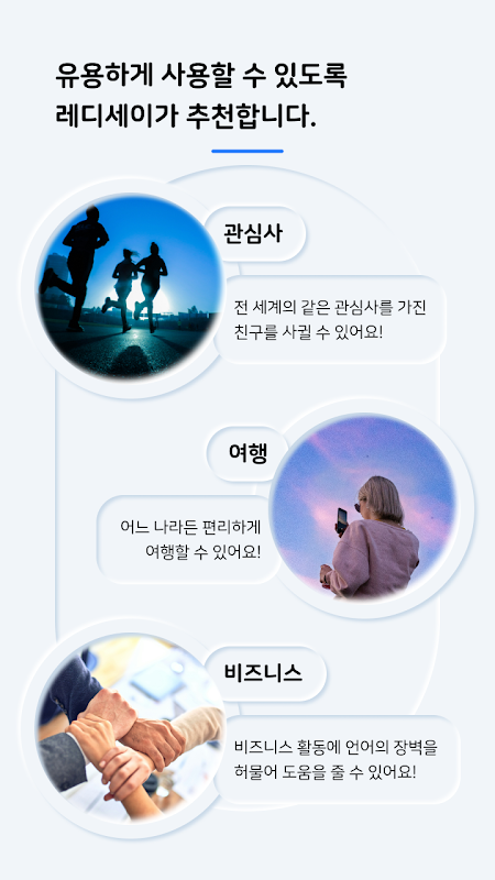 Tafsiran serentak berbilang bahasa, terjemahan ReadySay! Nikmati sembang suara dengan orang di seluruh dunia, melangkaui halangan negara dan bahasa.