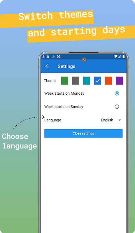 ✔ menyesuaikan penampilan aplikasi. Bagi mereka yang suka bekerja pada waktu malam, ada tema gelap.