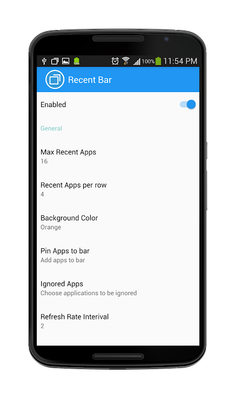 • Karena pembatasan LOLLIPOP, Anda perlu untuk memungkinkan (akses statistik penggunaan) untuk aplikasi Terbaru bar. Anda akan diminta untuk memungkinkan akses jika tidak sudah diberikan.