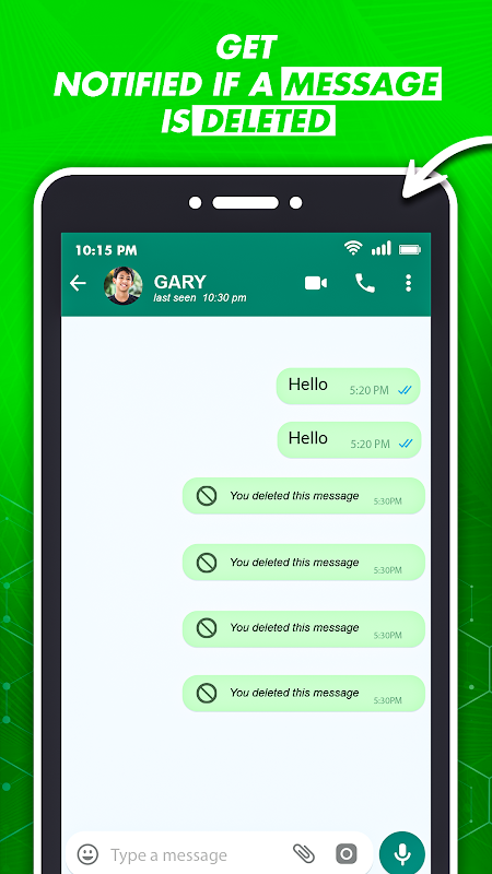 WA memulihkan mesej yang dipadam akan segera menunjukkan pemberitahuan apabila seseorang akan memadamkan sebarang mesej teks menggunakan aplikasi pemulihan mesej yang dipadamkan