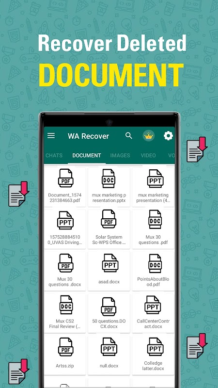 Dengan memulihkan mesej yang dipadam untuk whatsdelete: pengguna boleh menyimpan media, mesej yang dipadam dan ia akan memberitahu pengguna apabila mana-mana foto, audio, mesej atau video dialih keluar. Mempunyai Auto memulihkan mesej yang dipadam, anda akan menyimpan sebarang media (Foto/Video) dan mesej untuk anda. Dalam Pemulihan Foto dan pemuat turun status ia membolehkan anda memulihkan foto yang dipadam dan juga menyimpan status orang yang anda sayangi. Aplikasi pemulihan Whatsdelete adalah aplikasi percuma yang membantu pengguna memantau pemberitahuan dan di samping ini menyimpan semua media yang dipadam seperti (Foto, Mesej, video, dll.). Untuk memulihkan media yang dipadam hanya ada satu penyelesaian iaitu "Pulihkan Mesej Dipadam: Penjimat Status untuk WA". Dalam Pulihkan pengguna apl yang dipadam boleh memulihkan dan memulihkan sebarang media yang dipadam, mesej dengan mudah. Adalah sangat menjengkelkan bagi kebanyakan kita untuk melihat "Mesej ini telah dipadamkan" dan anda sentiasa mempunyai rasa ingin tahu tentang apa yang ada dalam mesej yang dipadamkan. Lihat memulihkan mesej yang dipadam ialah ciri di mana pengguna boleh melihat mesej yang dihantar oleh seseorang yang disulitkan pada mudah alih, jadi tiada cara lain untuk mengakses mesej/media secara langsung. Dengan mempunyai Pulihkan aplikasi mesej yang dipadam, ia membolehkan anda memulihkan media yang dipadam, mesej dan juga ia mempunyai ciri yang lebih bersih, pengurusan fail!