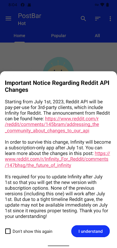 Ini ialah aplikasi pelanggan Reddit pada platform Android, yang membawa pengguna pengalaman menyemak imbas yang lancar. Sama ada anda berminat dengan berita, perbincangan topik, gosip hiburan atau trend teknologi, apl ini memberi anda liputan.