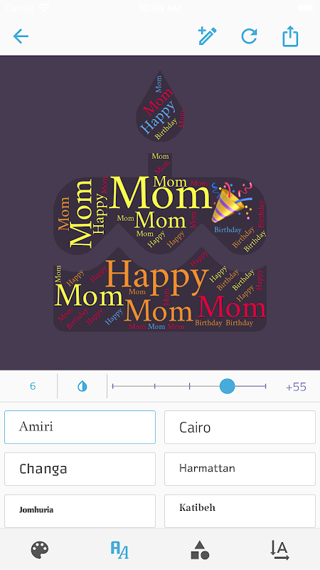 Cukup masukkan beberapa perkataan, dan aplikasinya akan mengacaknya dengan baik dalam banyak bentuk dan dengan warna yang berbeza.