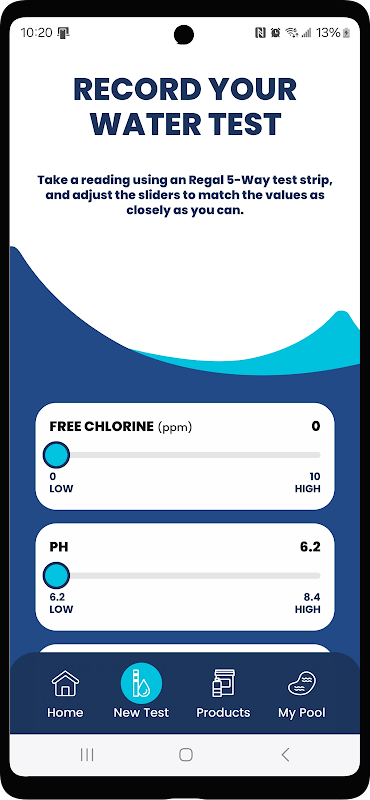 Aplikasi Ujian Air Regal, dipasangkan dengan Jalur Ujian 5 Hala Regal, meletakkan ujian air tahap pro betul-betul di tangan anda. Hanya gunakan apl untuk mengambil foto jalur ujian dan dapatkan analisis air terperinci dengan serta-merta dengan preskripsi bahan kimia Regal tepat yang anda perlukan untuk mengimbangi air kolam anda. Ujian ini meliputi Klorin Percuma, pH, Kealkalian, Kekerasan Kalsium dan Asid Sianurik. Jadi luangkan sedikit masa untuk meneka dan lebihkan masa menikmati air jernih. Regal memberi anda keputusan diraja.
