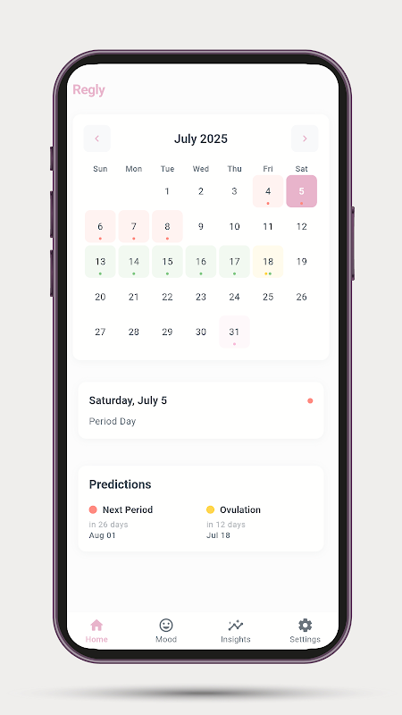 Regly ialah apl ringkas dan memfokuskan privasi untuk membantu anda menjejaki haid, ovulasi dan corak kitaran umum.