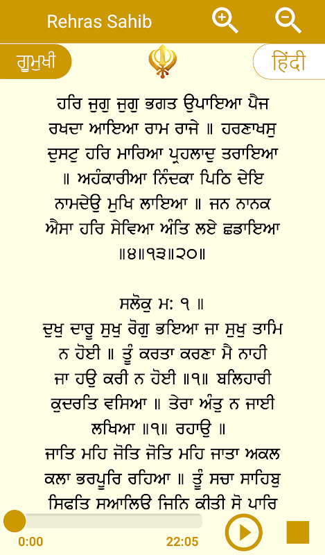 "Rehras Sahib Ji Paath" app lets you connect with the Precious Words Of Shri Rehras Sahib Ji Paath anywhere, anytime.