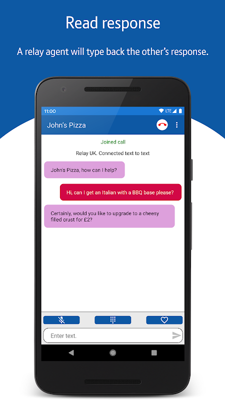 Relay UK membenarkan orang pekak, kurang pendengaran dan bermasalah pertuturan membuat panggilan telefon kepada sesiapa sahaja menggunakan teknologi aplikasi terkini. Anda tidak memerlukan sebarang kit khas – hanya muat turun apl ke telefon pintar atau tablet anda, pautkan nombor telefon anda dan anda sudah bersedia untuk pergi. Ia percuma untuk digunakan, anda hanya membayar caj biasa anda untuk panggilan yang anda buat.