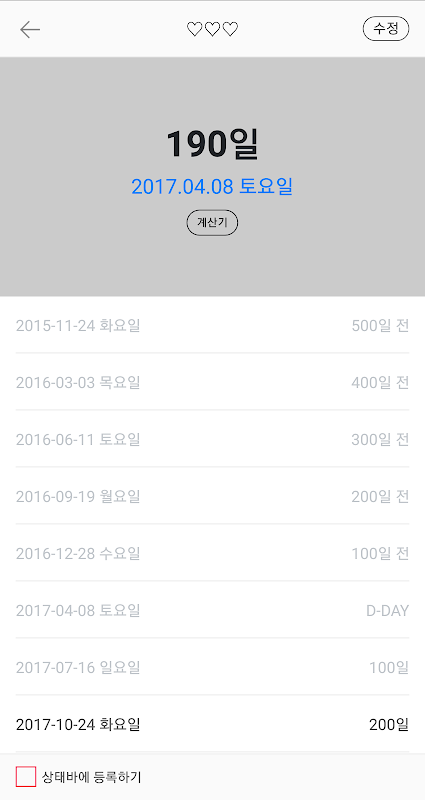- '기념일 보기' 화면에 기념일 계산기 기능 추가