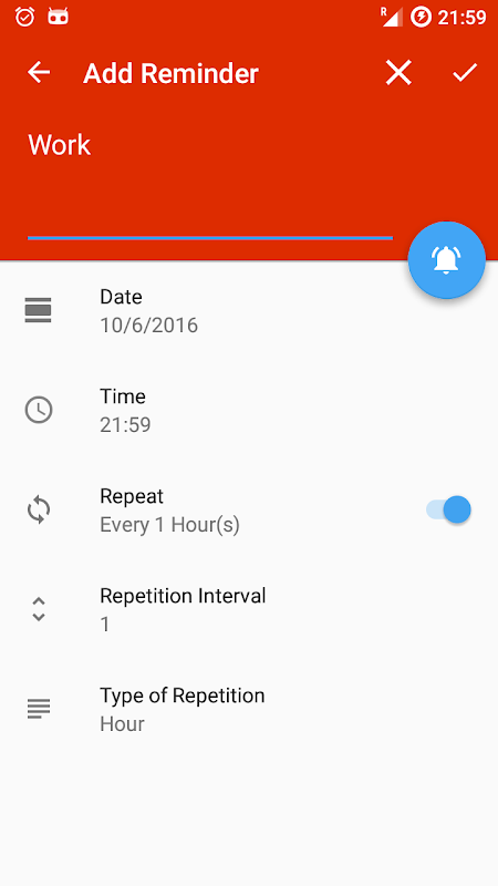 - Aplikasi Reminder dengan pemberitahuan anda mempunyai peluang untuk menetapkan Intervall peringatan