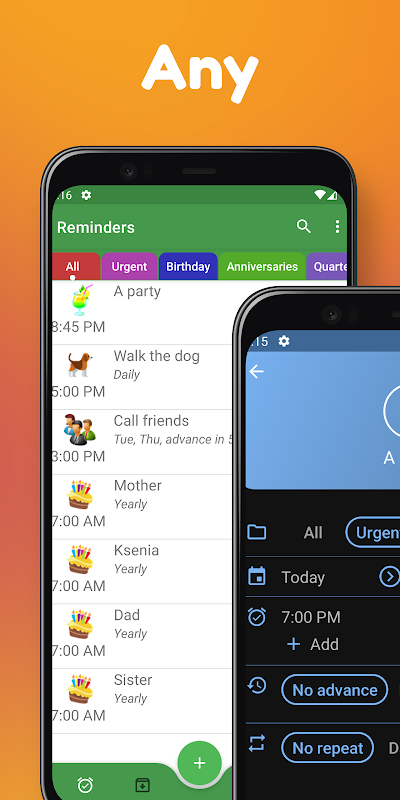 Permohonan kami akan membolehkan anda dengan cepat dan mudah menetapkan peringatan berwarna-warni untuk tugas-tugas penting dalam kehidupan seharian anda! Anda boleh menyenaraikan tugas anda ke dalam folder! Juga, aplikasi itu mempunyai banyak tetapan yang berfungsi dan perlu: