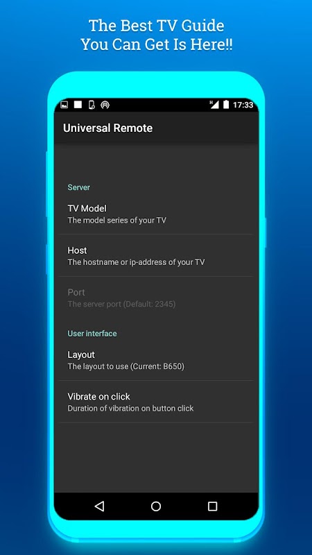 Universal Remote Control for TV turns your phone or tablet into a Universal remote for almost all tvs. Your remote control for all channels, works as a Universal Remote. The operation is the same as the real TV remote.