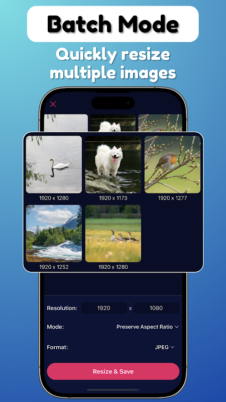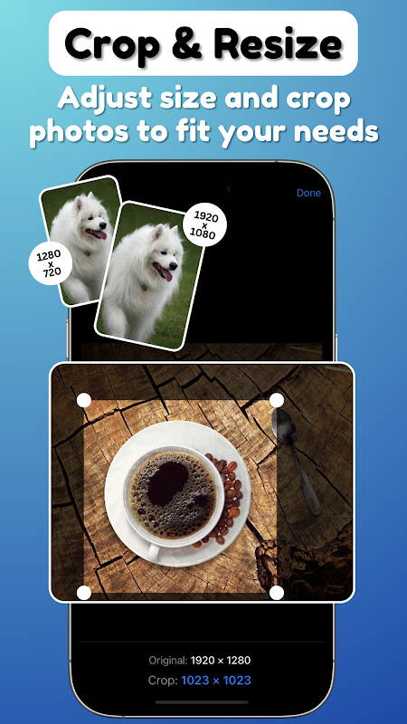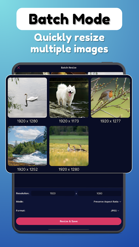 Sama ada anda memerlukan pengubahsuai foto yang pantas, penukar peleraian yang tepat atau pengubahsuai gambar kelompok untuk keseluruhan galeri anda, apl ini melakukan semuanya. Nikmati hasil profesional dengan antara muka intuitif yang direka untuk semua orang.