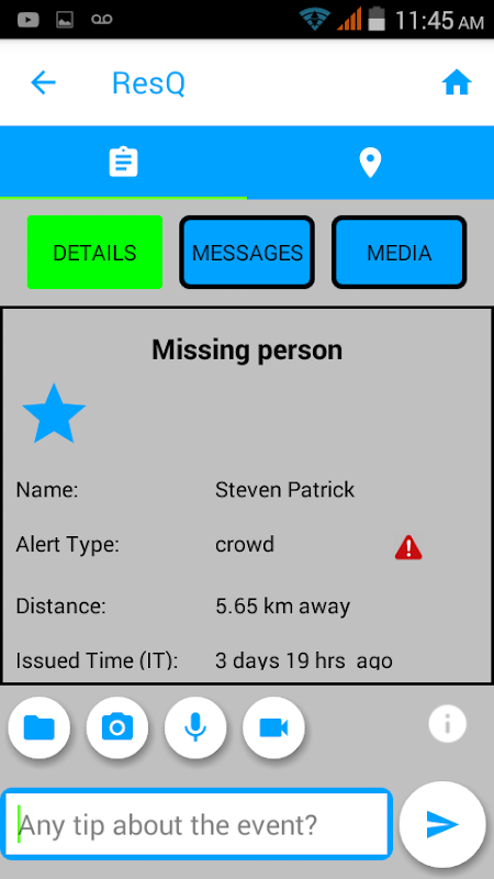 Pemberitahuan / sumber orang ramai juga disertakan: makluman orang hilang dan sebarang kejadian jenayah di sekitar lokasi anda sekarang (pilihan: memerlukan maklumat lokasi latar belakang dihantar secara berkala). Sekiranya anda mempunyai maklumat mengenai kejadian tertentu, anda boleh menghantar mesej, gambar atau video kepada penghantar kami untuk membantu kejadian tersebut.