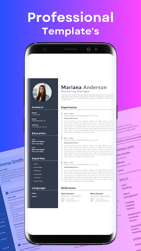 - Simpan berbilang data profil dan editnya bila-bila masa anda mahu dengan aplikasi pembuat cv profesional & pencipta resume profesional.