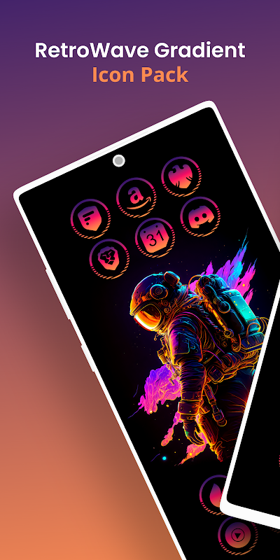 Retrowave style icons in gradient cutted ring graphic perfect for your android launcher using this minimal , flat Icon pack