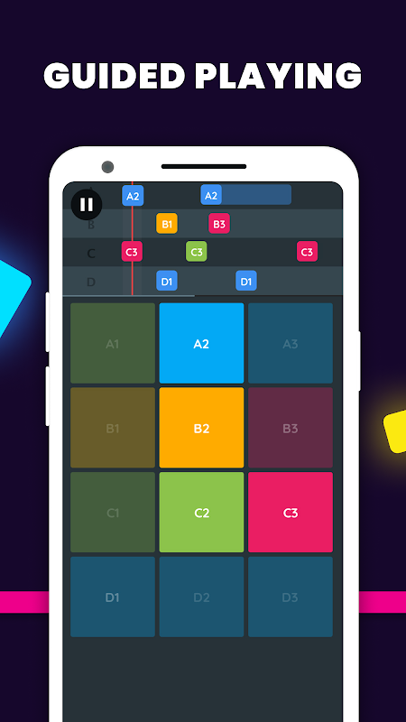 * Bermain berpandu: Rhythms bantuan anda bermain bahagian yang berlainan di landasan yang betul dan kemudian anda boleh menggabungkan mereka bersama-sama. Aplikasi ini akan membawa anda untuk memajukan kemahiran anda dan mencabar diri sendiri.