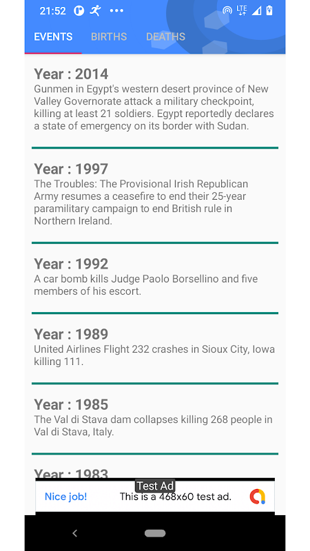 The second section is dedicated to "This day in History". All recorded events in History, births and Deaths, are listed with links to read them up in Wikipedia. The events change per day.