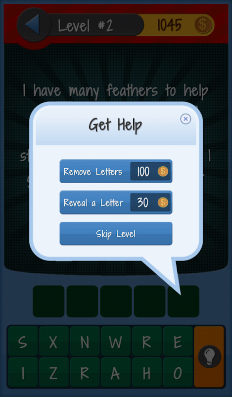 Riddle me this: I ask over 300 curious queries, I have scrambled letters, I'll frustrate the heck out of you, but you'll always comeback for more, I'm always fun - definitely no bore! You got it! I'm Riddles, and I'm here to make riddles an interactive gaming experience that will quickly exceed your expectations of word games! Play solo or with a few buddies, I'm the kind of game that gets more fun, the more brains you add to the puzzles. Help is available along the way, should you get stuck - or lazy! Just choose to remove letters or reveal correct letters to guide you toward the witty, rewarding answer!
