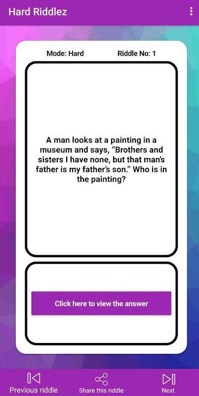 Different modes like Easy riddles, Funny Riddles, Hard Riddles